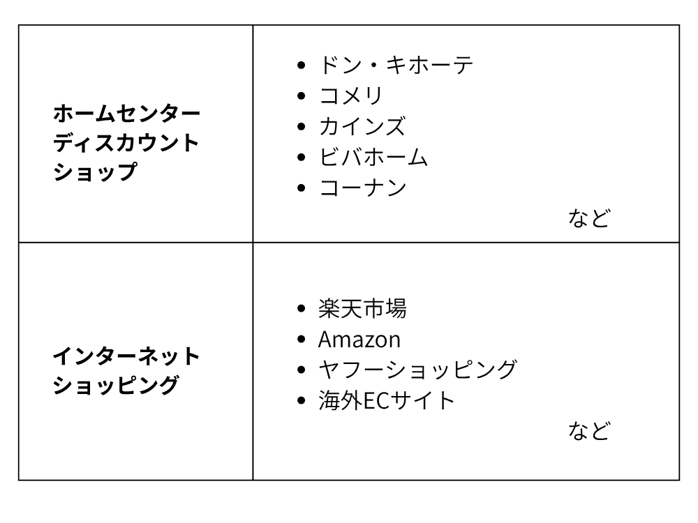 ホームセンターやディスカウントショップ